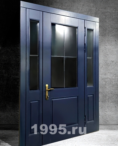 Полуторная дверь МДФ RAL синяя с остеклением и вставкой